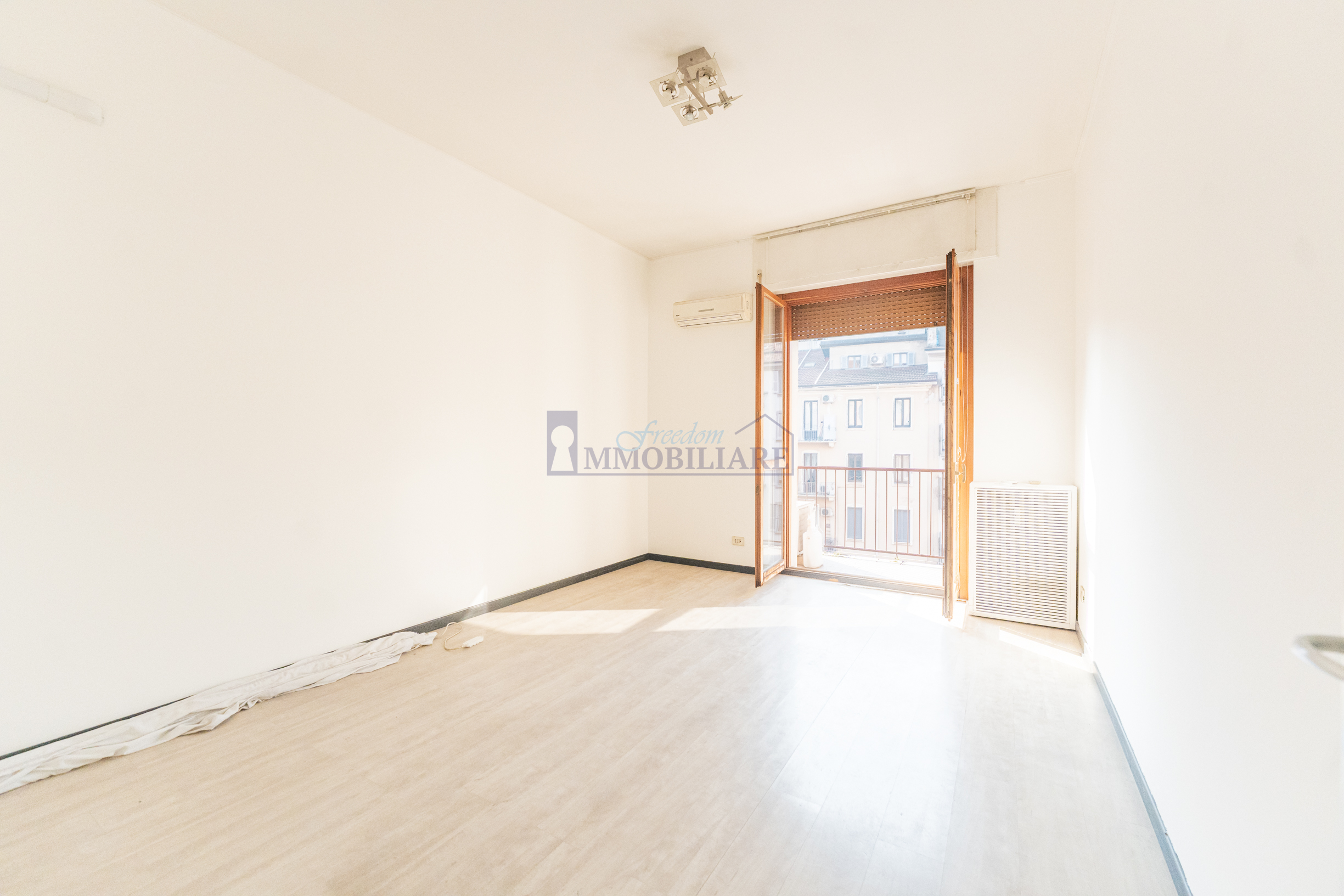 La soluzione è composta da un ingresso, disimpegno, cucina abitabile con accesso ad un primo balcone e due ampie stanze luminose ognuna con accesso al proprio balcone. Sono presenti due bagni, uno molto ampio e finestrato. L’affaccio della casa è all’interno del condominio e garantisce luminosità e privacy nonostante la posizione centralissima.